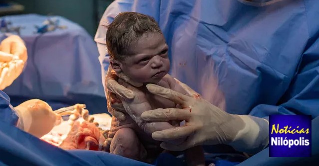 O fotógrafo contou que só depois de sair do centro cirúrgico que percebeu a expressão da bebê.